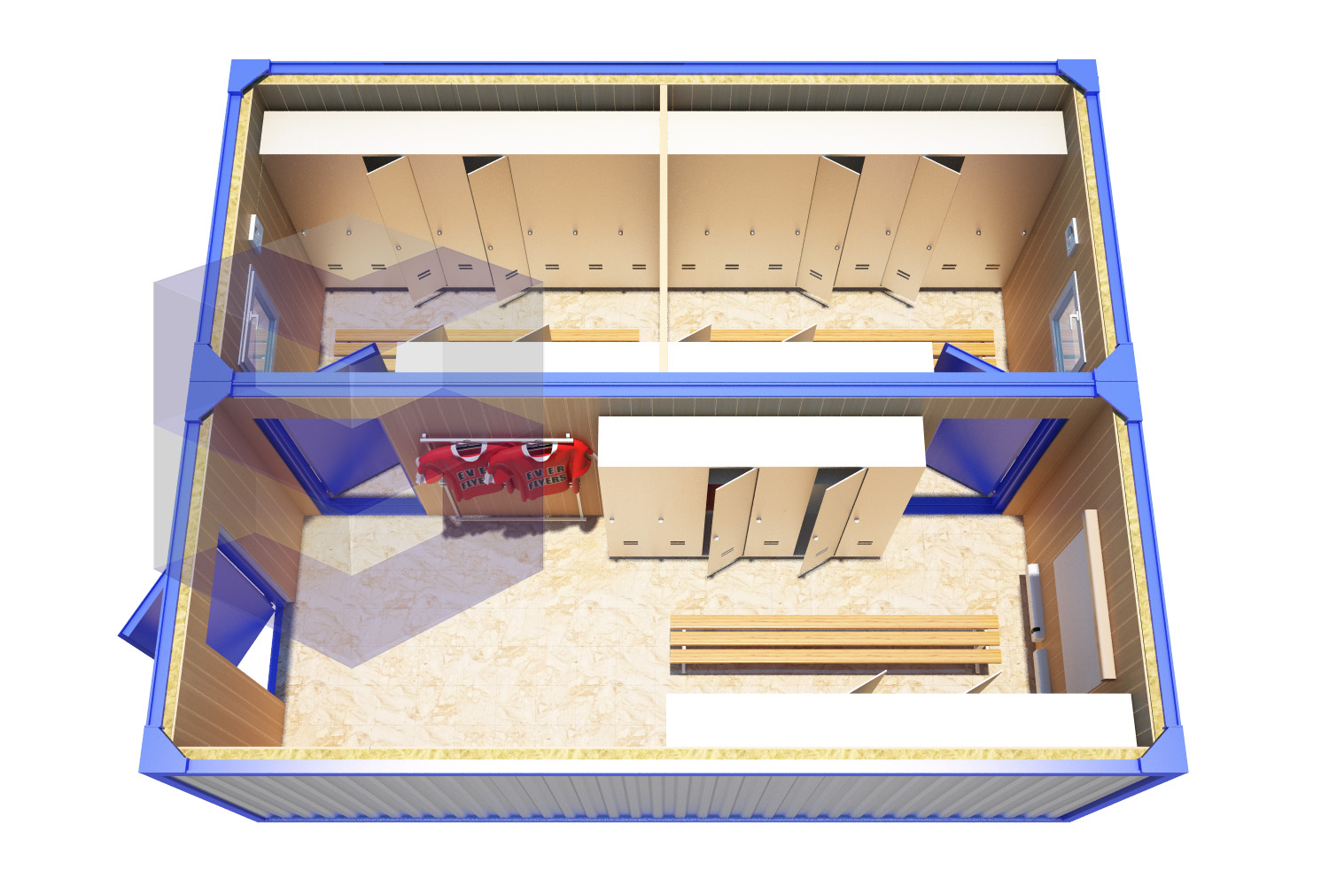У нас можно приобрести готовые изделия или заказать персональный проект модульной раздевалки для рабочих мр-1 в Люберцах и его реализацию с учетом индивидуальных условий. Мы используем проверенную модульную технологию и только сертифицированные материалы. На всю продукцию предоставляется гарантия 1 год.